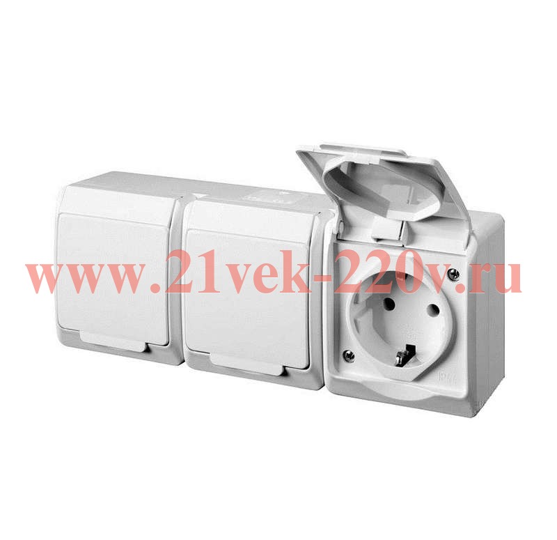 Блок из трех розеток с заземляющими контактами для помещений с повышенной влажностью, накладного монтажа Гермес ИЭК ERMP32-K01-16-54-EC