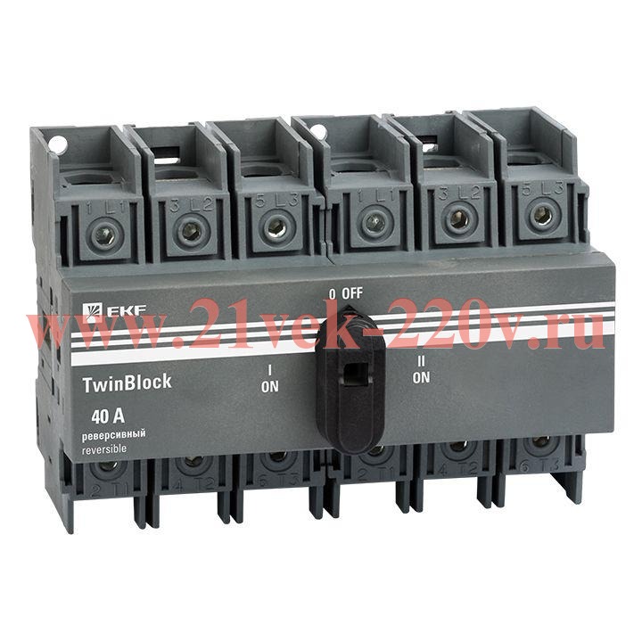 Рубильник 3п 40А реверсивный с рукояткой для прямой установки TwinBlock EKF tb-s-40-3p-rev.