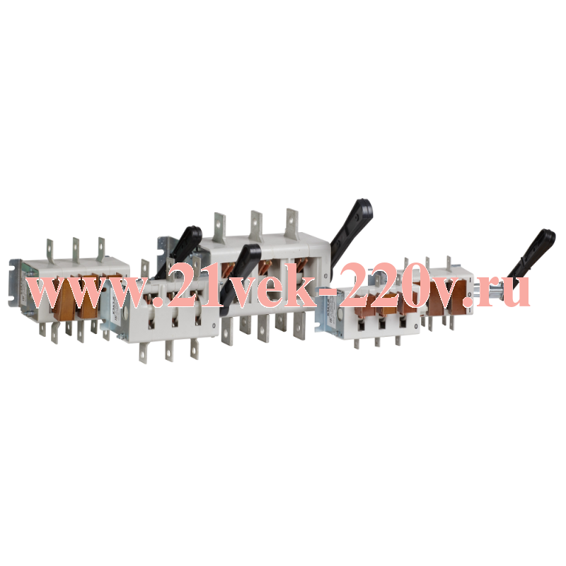 Выключатель-разъединитель 3 полюсный на номинальный ток 400 А, в котором установлена несъёмная рукоятка.