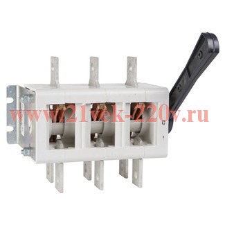 Выключатель-разъединитель 3 полюсный на номинальный ток 400 А, в котором установлена несъёмная рукоятка.