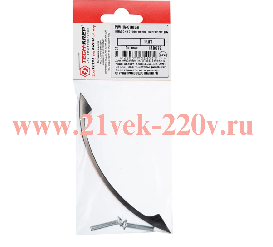 Ручка-скоба Классик 5-006-96мм никель/медь (пакет) Tech-Krep