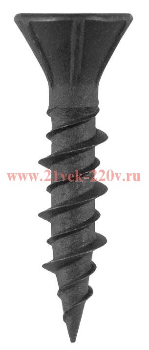 Саморез СГВЛ выполнен из углеродистой стали с фосфатным или оксидным покрытием черного цвета. Имеет потайную головку с насечками для раззенковки и крестообразным шлицем PH2, двухзаходную резьбу (2 нити разной высоты) и острый наконечник. Предназначен для крепления гипсоволокнистых листов (ГВЛ) к металлическим профилям толщиной до 0,9 мм и деревянным направляющим без предварительного сверления.
