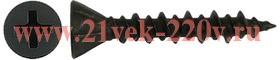 Саморез СГВЛ выполнен из углеродистой стали с фосфатным или оксидным покрытием черного цвета. Имеет потайную головку с насечками для раззенковки и крестообразным шлицем PH2, двухзаходную резьбу (2 нити разной высоты) и острый наконечник. Предназначен для крепления гипсоволокнистых листов (ГВЛ) к металлическим профилям толщиной до 0,9 мм и деревянным направляющим без предварительного сверления.