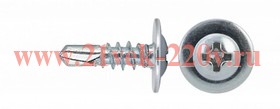 - Особенности: имеют полусферическую головку с прессшайбой и крестообразным шлицем PH2, резьбу с мелким шагом и острый наконечник. Специальная форма головки самореза позволяет осуществить надежную фиксацию тонколистового материала к металлическому каркасу, не продавливая его. Окрашенная головка самореза позволяет подобрать подходящий крепеж в цвет с закрепляемым материалом. Подходят для крепления различных кровельных элементов, а также сайдинг-панелей к металлическим каркасам толщиной до 0,9 мм без предварительного сверления и до 2 мм — с предварительным сверлением.