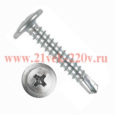 - Особенности: имеют полусферическую головку с прессшайбой и крестообразным шлицем PH2, резьбу с мелким шагом и сверловидный наконечник. Специальная форма головки самореза позволяет осуществить надежную фиксациютонколистового материала к металлическому каркасу, не продавливая его.Подходят для крепления различных кровельных элементов, а также сайдинг-панелей к металлическим каркасам толщиной до 2 мм без предварительного сверления.