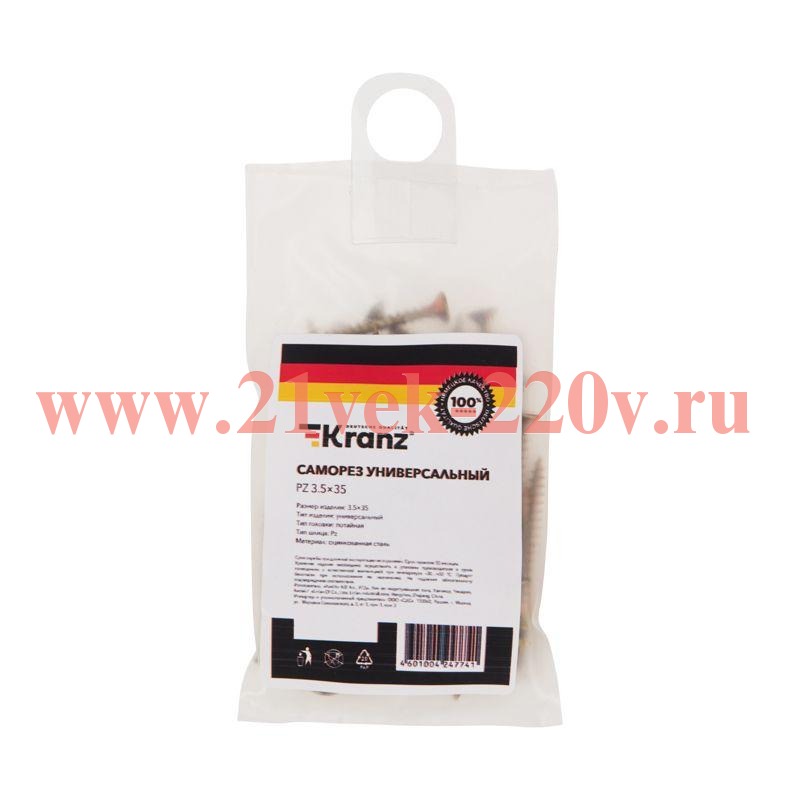 Саморез универсальный 3.5х35 желт. цинк (уп.50шт) Kranz 1111-3535-4