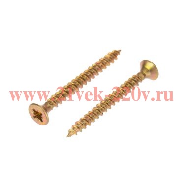 Саморезы изготовлены из стали и обработаны методом желтопассирования, благодаря чему надежно защищены от коррозии и механических повреждений. Потайная головка полностью погружается в материал и не выступает над его поверхностью, оставляя ее гладкой и ровной.