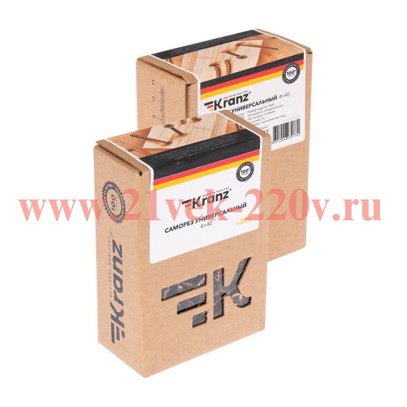 Саморез универсальный KRANZ 4х40, желтый цинк, упаковка поставщика ( 6 000 шт. ) Саморезы универсальные имеют широкий диапазон использования: - для сборки деревянных конструкций; - для сборки сантехнических и электротехнических изделий; - для сборки мебели; - крепление к металлическим изделиям (с предварительным сверлением). Преимущества: Цинковое покрытие обеспечивает надежную защиту от коррозии и механических повреждений. Используются совместно со всеми видами дюбелей (т. к. резьба имеет подходящий шаг и недостаточно острая, чтобы прорезать тело дюбеля).
