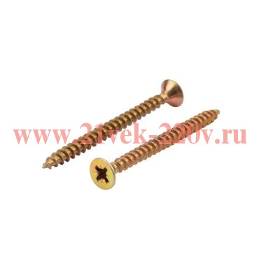 Саморезы изготовлены из стали и обработаны методом желтопассирования, благодаря чему надежно защищены от коррозии и механических повреждений. Потайная головка полностью погружается в материал и не выступает над его поверхностью, оставляя ее гладкой и ровной.