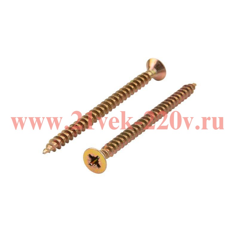 Саморезы изготовлены из стали и обработаны методом желтопассирования, благодаря чему надежно защищены от коррозии и механических повреждений. Потайная головка полностью погружается в материал и не выступает над его поверхностью, оставляя ее гладкой и ровной.