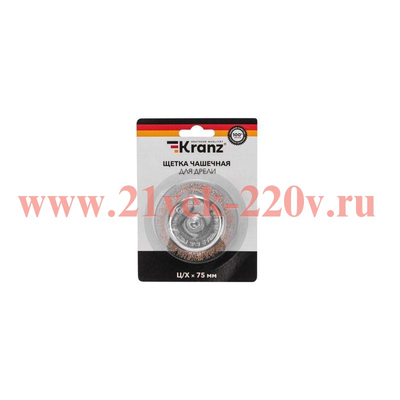 Щетка чашечная для дрели витая латунированная проволока 75мм Kranz KR-91-1255
