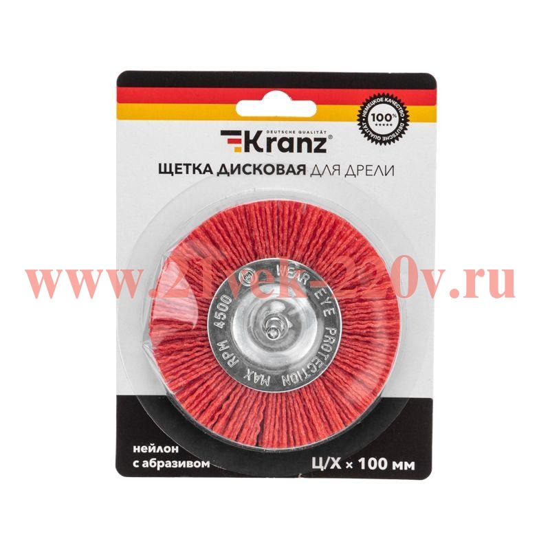 Щетка дисковая для дрели нейлоновая проволока с абразивным покрытием 100мм Kranz KR-91-1233