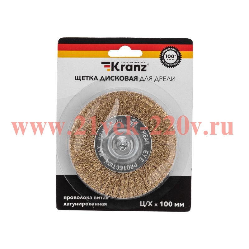Щетка дисковая для дрели витая латунированная проволока 100мм Kranz KR-91-1231