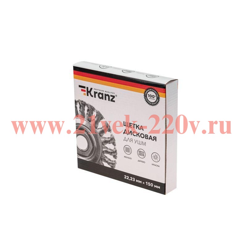 Щетка дисковая для УШМ крученая стальная проволока 150мм отв. 22.23мм Kranz KR-91-1239
