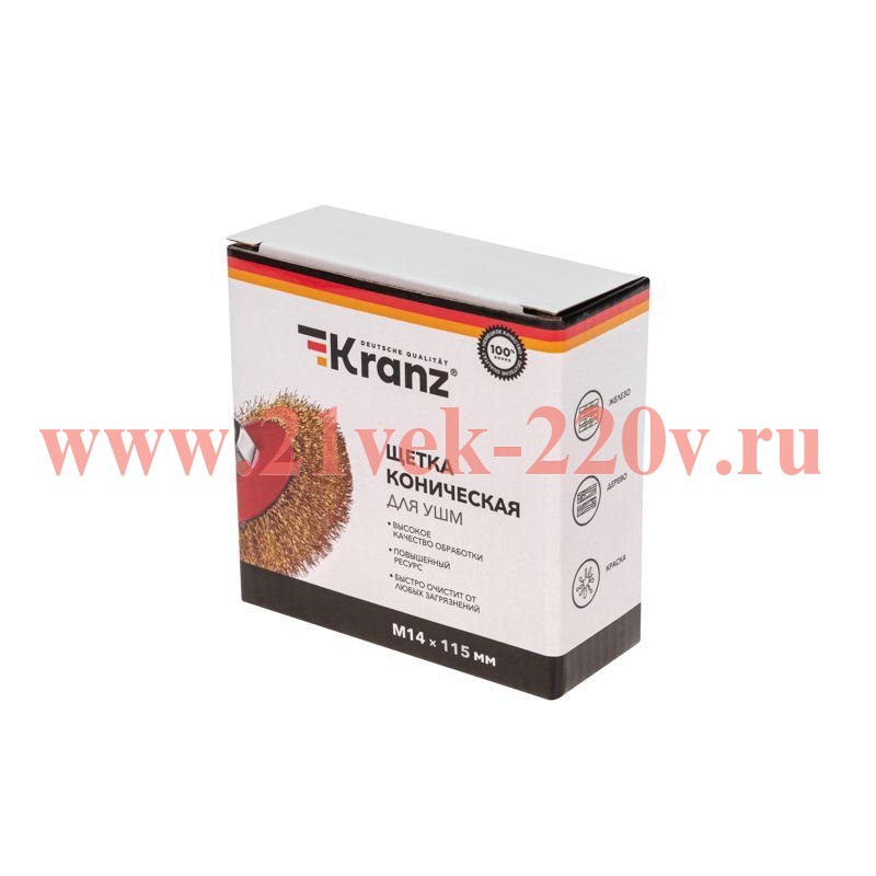 Щетка коническая для УШМ витая латунированная проволока 115мм М14 Kranz KR-91-1206