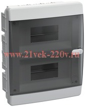 Пластиковый распределительный шкаф ЩРВ-18 скрытой установки с дымчатой дверцей для модульного оборудования