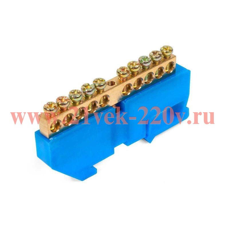 Шина N "ноль" на DIN-изол ШНИ-6х9-12 (синяя) КВТ соединение нулевых, защитных и фазных проводников на 12 вводов.