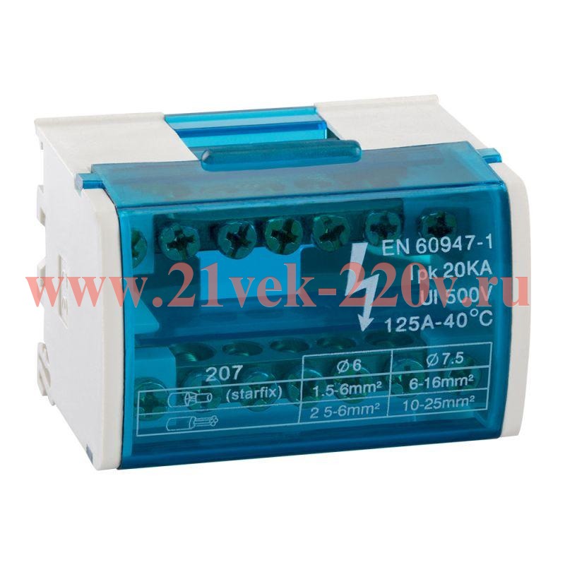 Шины нулевые в корпусе с креплением на DIN-рейку служат для электрического и механического соединения проводников в цепях переменного и постоянного тока с номинальным напряжением до 400 В. Шины применяются в электрощитах для подсоединения нулевых рабочих и нулевых защитных проводников. Номинальный ток In (А): 100