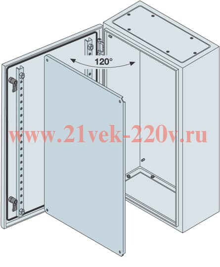 Монтажный шкаф фирмы ABB серии SR2 светло-серого цвета размером 400х400х200 мм со степенью защиты IP65, монтажной панелью и металлической дверью