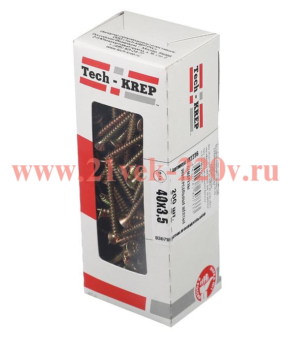 Шуруп универсальный 3.5х40 с потайной головкой (уп.200шт) коробка желт. Tech-Krep 102236