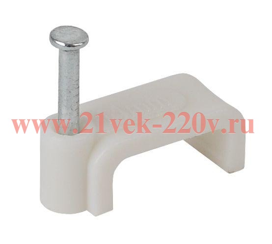 Предназначены для крепления круглых и плоских кабелей. Изготовлены из гибкого негорючего ударопрочного полипропилена, гвоздь - закалённая оцинкованная сталь.