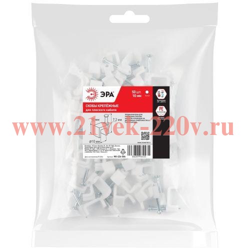Скоба пластиковая ЭРА NO-224-586 крепежная плоская 10 мм белая (50 шт/уп)