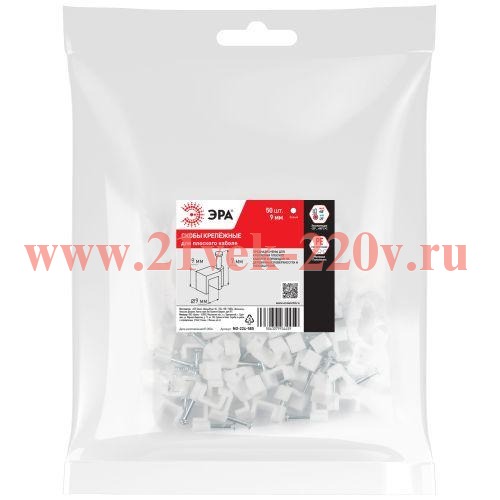 Скоба пластиковая ЭРА NO-224-585 крепежная плоская 9 мм белая (50 шт/уп)