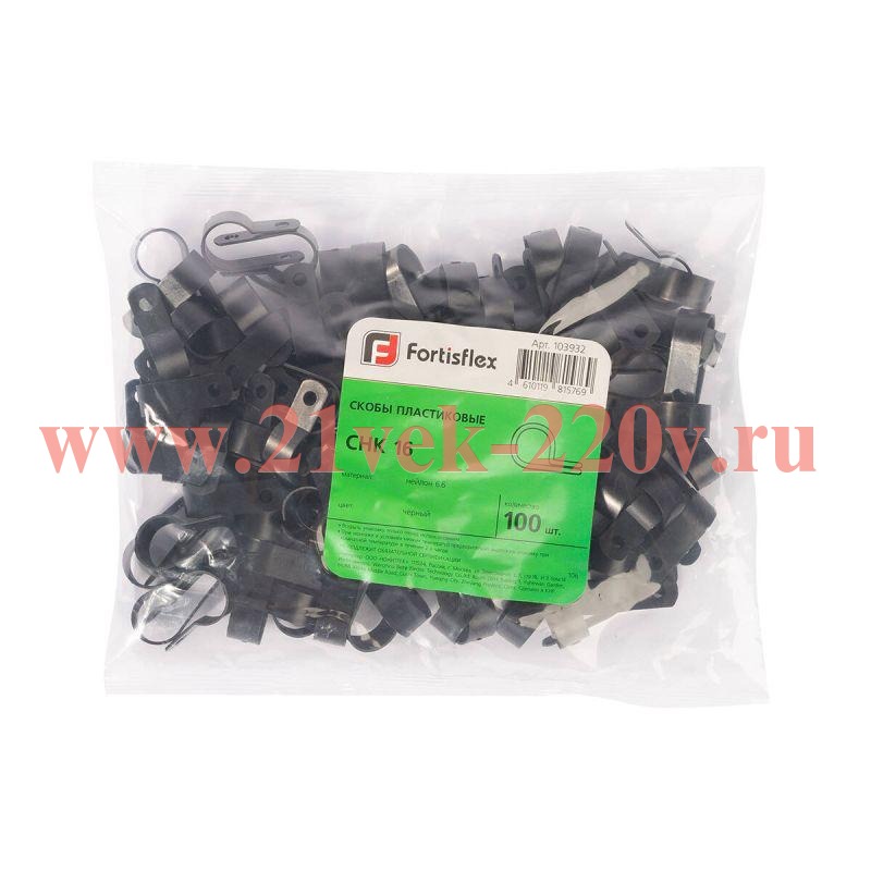 Скоба пластиковая СНК 16 черн. (уп.100шт) Fortisflex