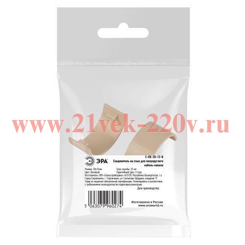 Соединитель на стык для полукруглого кабель-канала 20х12мм C-KK-20-12-B беж. (уп.2шт) Эра