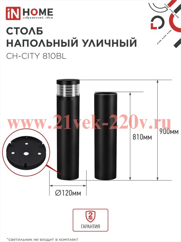 Столб напольный СН-CITY 810BL для светильника ТБУ-CITY 810мм IP54 черн. IN HOME
