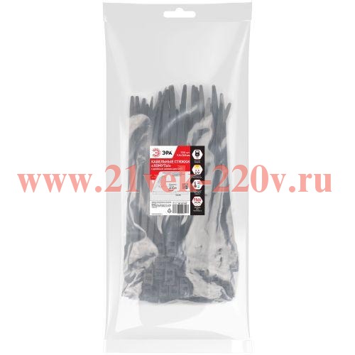 Кабельная стяжка ЭРА NO-224-593 (хомут) нейлоновая для СИП с горизонтальным замком 9.0 х 260 мм чёрная (100 шт/уп)