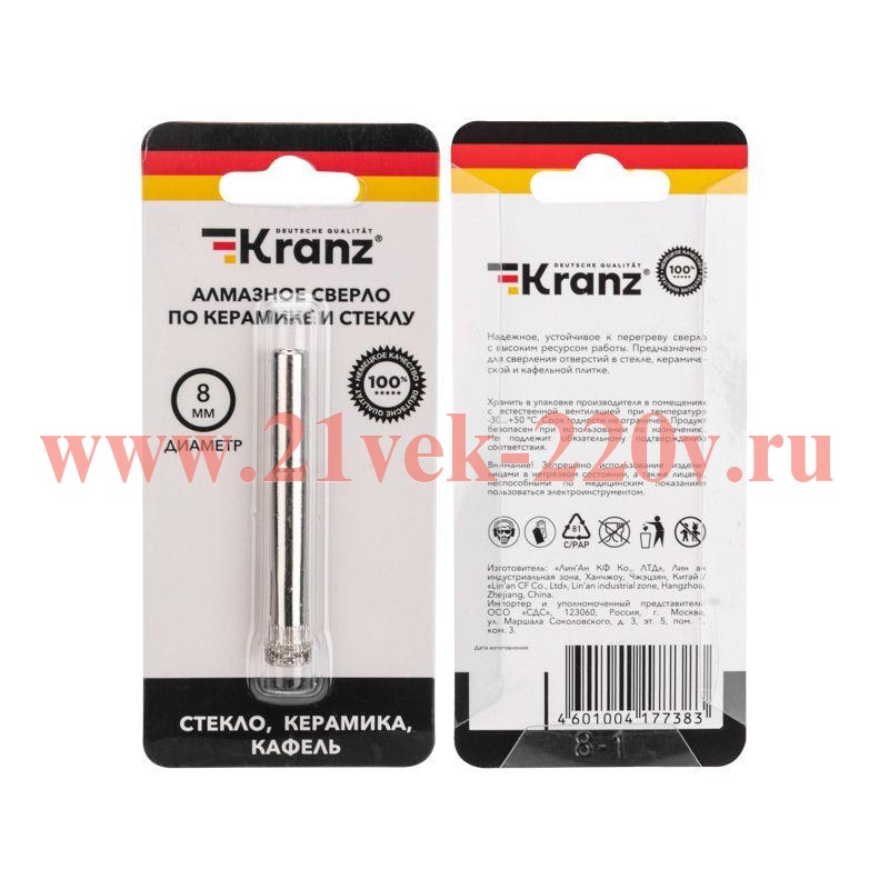 Сверло алмазное 8мм по керамике и стеклу Kranz KR-92-0002