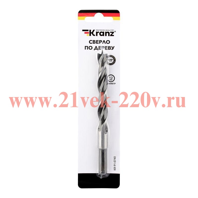 Сверло KRANZ предназначено для сверления отверстий в мягких и твердых породах древесины, ДВП, ДСП, фанеры и т. п.