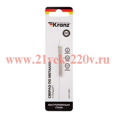 Сверло по металлу 2мм HSS DIN 338 (уп.2шт) Kranz KR-91-0553