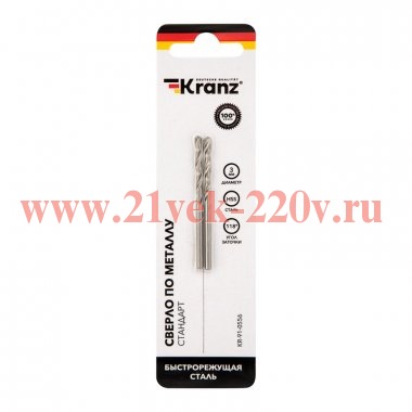 Сверло по металлу 3.0мм HSS DIN 338 (уп.2шт) Kranz KR-91-0556