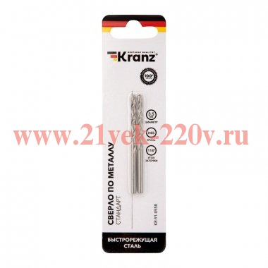 Сверло по металлу 3.5мм HSS DIN 338 (уп.2шт) Kranz KR-91-0558