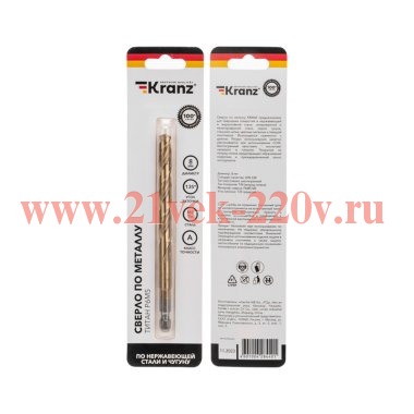 Сверло по металлу, 8мм, Р6М5, ТИТАН, шестигранный хвостовик (1 шт. в упаковке) DIN 338 KRANZ Сверло по металлу KRANZ предназначено для сверления отверстий в нержавеющей и жаростойкой стали, легированной и нелегированной стали, сером чугуне, стальном литье, цветных металлах и твердой пластмассе. Используется совместно с дрелью. Изделие выполнено из качественной быстрорежущей стали Р6М5, что обеспечивает долгий ресурс работы, высокую производительность, устойчивость к перегреву и высоким нагрузкам. Сверло обладает пониженным коэффициентом трения и обеспечивает эффективный отвод стружки. Рабочая часть инструмента позволяет быстро и надежно сверлить металл, гарантирует ровные и аккуратные отверстия. Заточка режущей части под углом 135 градусов способствует эффективному входу в материал. Покрытие из нитрид-титана предотвращает образование коррозии и преждевременный износ инструмента. Шестигранный хвостовик исключает проворачивание в зажимных патронах. Ресурс использования заметно увеличивается при использовании СОЖ.
