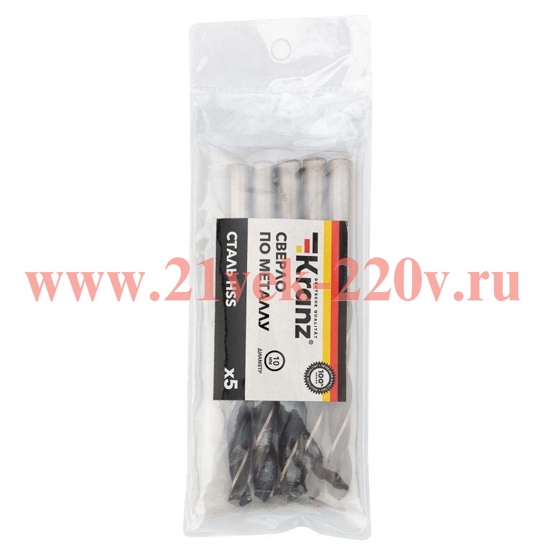 Сверло по металлу10.0мм HSS DIN 338 (уп.5шт) Kranz KR-91-0629