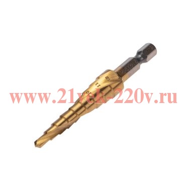 Сверло ступенчатое 4-5-6-7-8-9-10-11-12мм Р6М5 ТИТАН шестигр. хвостовик Kranz KR-12-6615