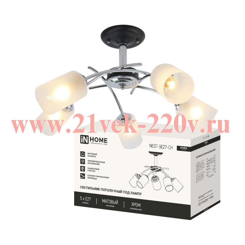 Светильник AURA NEST-5Е27-CH 5хE27 потолочн. под лампу плафон матов./корпус хромированный IN HOME