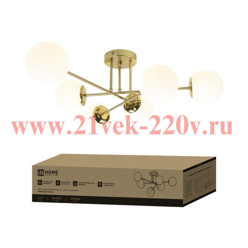 Светильник AURORA EASY-6G9-LT 6xG9 потолочн. под лампу; плафоны матов./корпус латунный IN HOME