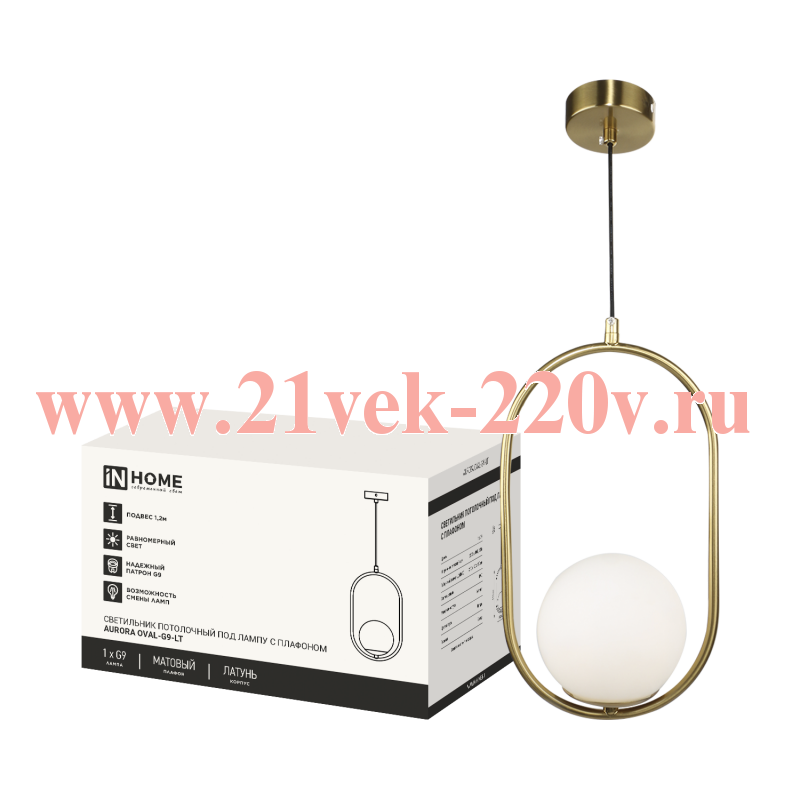 Светильник AURORA OVAL-G9-LT 1хG9 подвесной под лампу плафон матов./корпус латун. IN HOME