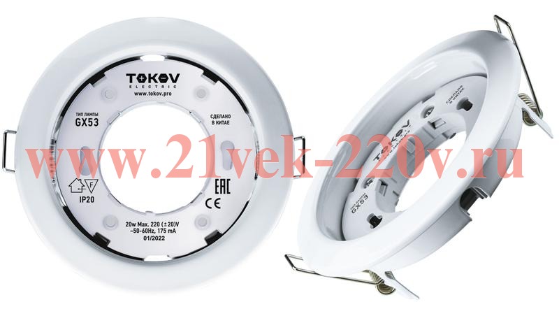 Встраиваемые светильники под лампу GX53 товарного знака Tokov Electric предназначены для общего и акцентного освещения жилых, административно-общественных и производственных помещений и рассчитаны для работы в сети переменного тока с номинальным напряжением 230 В и частотой 50 Гц.