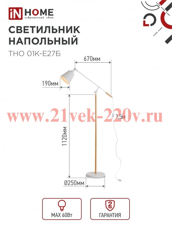 Светильник напольный под лампу ТНО 01К-E27Б 230В бел. плафон бел. корпус IN HOME