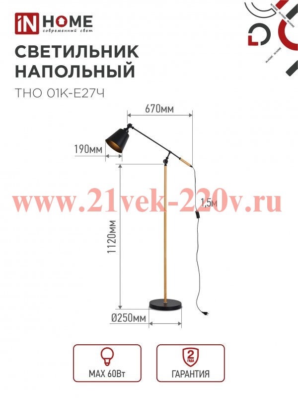 Светильник напольный под лампу ТНО 01К-E27Ч 230В черн. плафон черн. корпус IN HOME