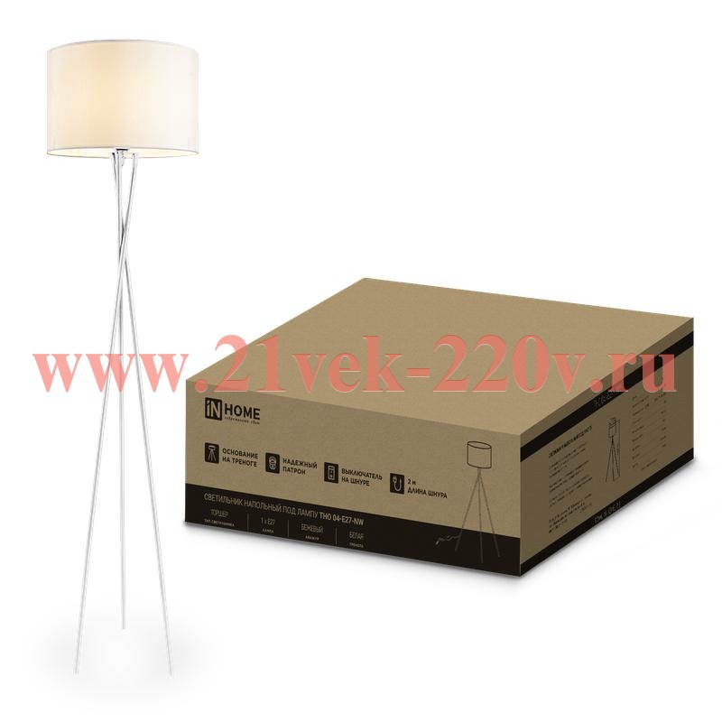 Светильник напольный под лампу ТНО 04-Е27-NW 230В беж. абажур/бел. тренога IN HOME