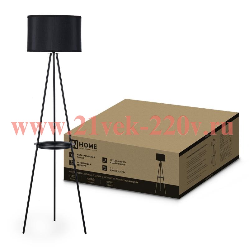 Светильник напольный под лампу ТНО 04ПВ-Е27-BB 230В полка черн. абажур/черн. тренога IN HOME