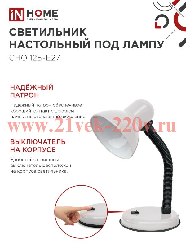 Светильник настольный под лампу на основании СНО 12Б-E27 бел. (коробка) IN HOME