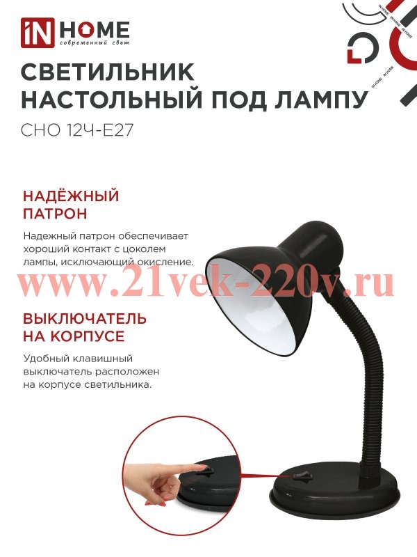 Светильник настольный под лампу на основании СНО 12Ч-E27 черн. (коробка) IN HOME