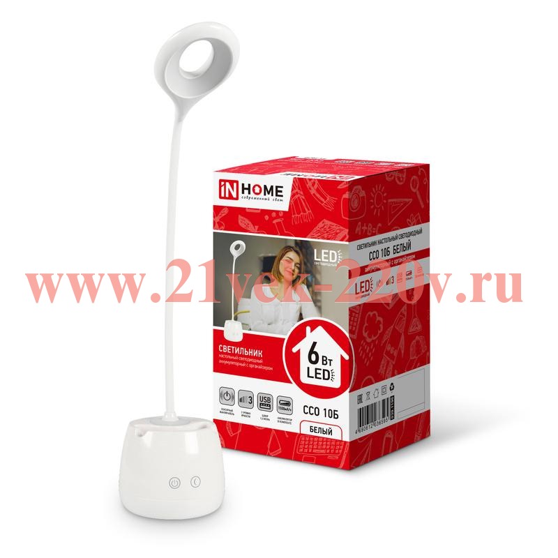 Светильник настольный светодиодный аккум. ССО 10Б 6Вт 6500К 480лм сенсор-диммер с органайзером USB-кабель